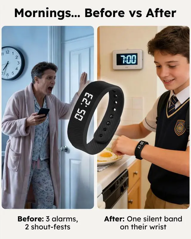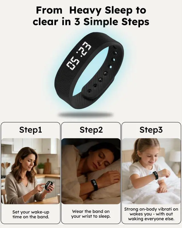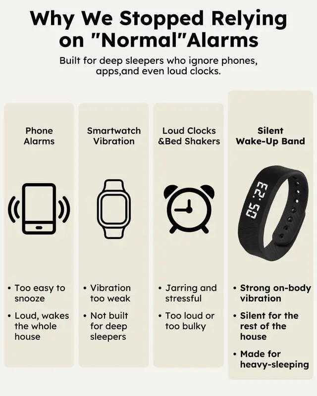 - Powerful Vibration Wake-Up: Designed specifically as a vibrating alarm clock for heavy sleepers