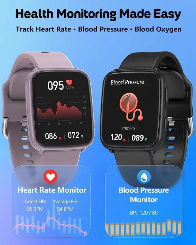 Track heart rate, blood pressure trends, blood oxy-gen & sleep quality in real-time. Get alerts for irregular data during workouts, stress or sleep. Stay healthy & stylish!