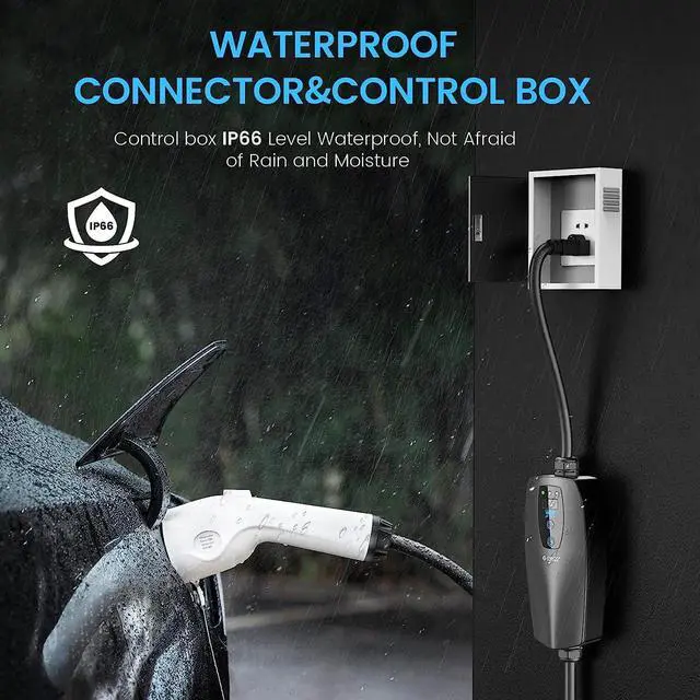 PORTABLE AND CONVENIENT EV CHARGER Utilizing the standard J1772 charging protocol, this electric vehicle charger is compatible with all electric cars and plug-in hybrids. The Level 2 portable ev charger also have 2 kinds of cable length 16.4 ft and 32.8 ft available, which is long enough for most driveways or garages.