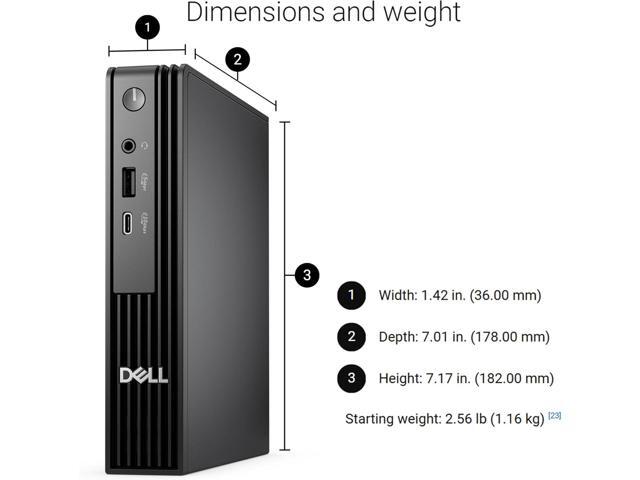 - The Dell Pro Micro desktop is ultra-small, weighing 2.56 lbs, 96% smaller than traditional desktops. Built for reliability, it passes military-grade tests for office use.