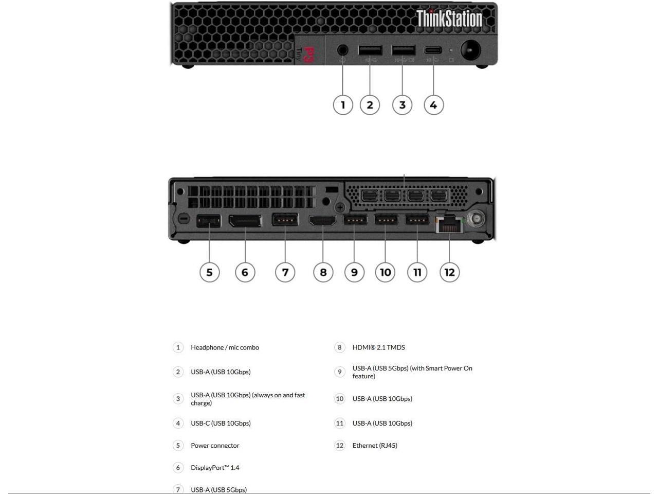 - With USB-A, USB-C, DisplayPort 1.4, HDMI 2.1, and Ethernet, the Lenovo ThinkStation P3 Tiny supports three 4K monitors at 60Hz for enhanced productivity.