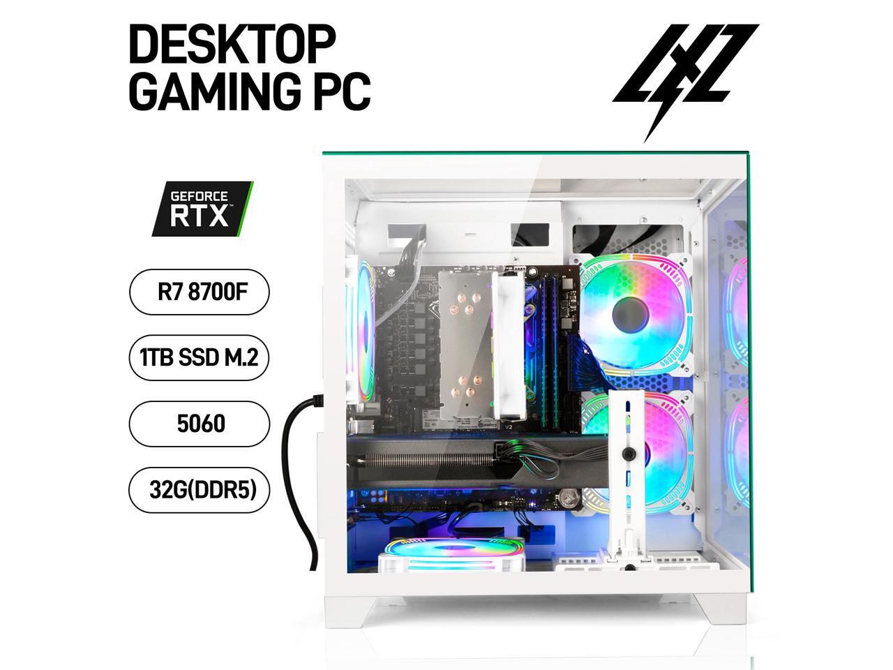 LXZ Gaming PC Desktop,Features AMD Ryzen 7 8700F 4.1 GHz (5.0 GHz Turbo), GeForce RTX 5060 (8G),32GB DDR5 RAM,1TB NVMe SSD,Supports WiFi 6,Prebuilt Gaming PC Tower