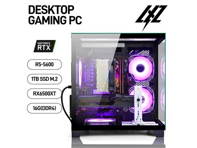 LXZ Gaming Desktop Computer PC,Powered by AMD Ryzen 5 5600(4.4 GHz Turbo),RX 6500XT 4GB Graphics,16GB DDR4 3200MHz,1TB NVMe SSD,Supports WiFi6,Seaview Case,Prebuilt Gaming PC Tower Black