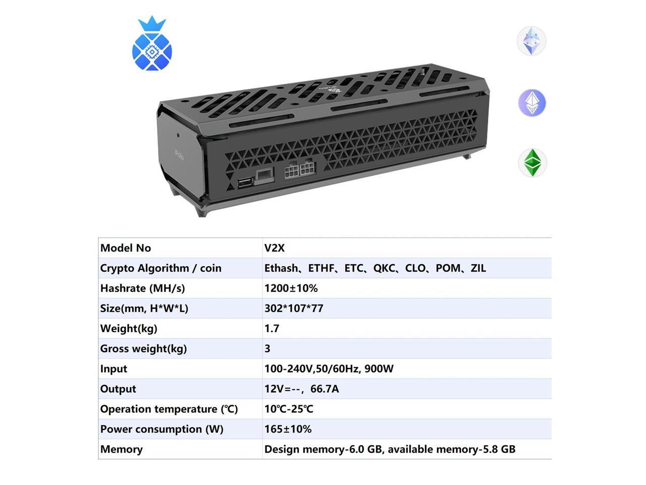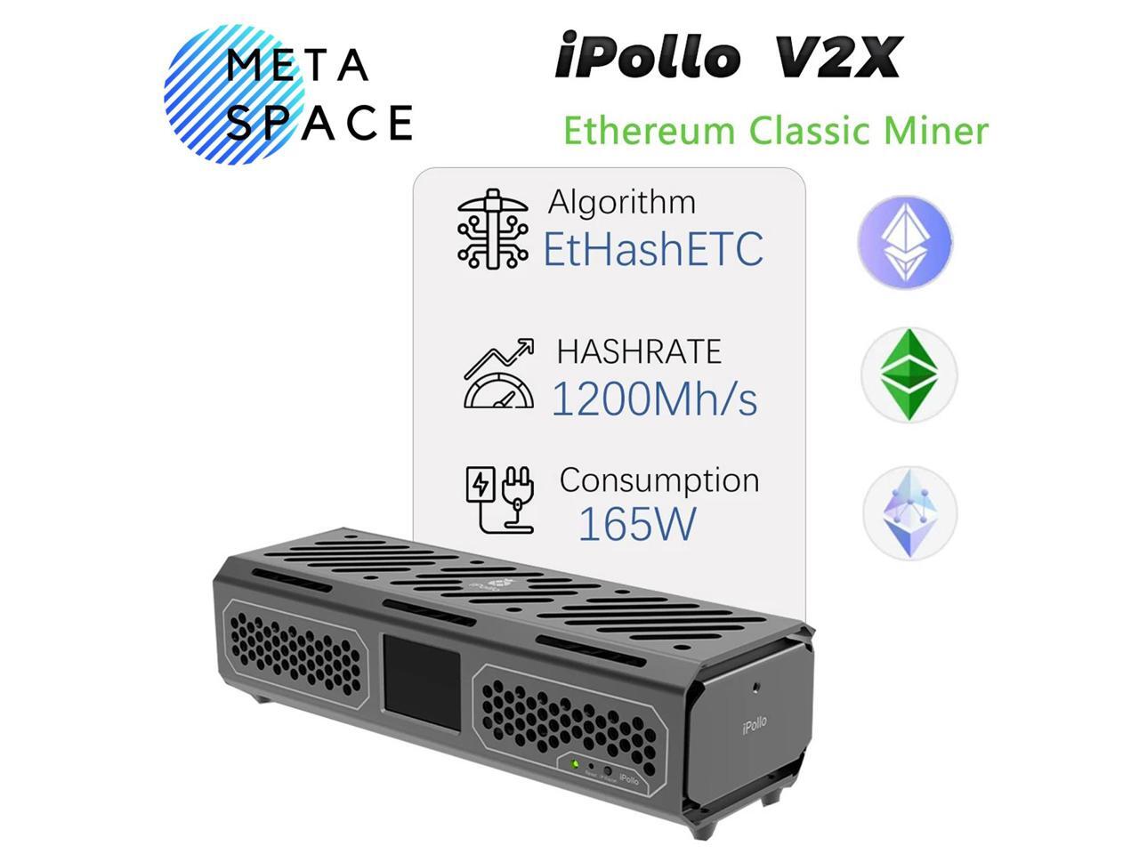 - iPollo V2X is an ASIC miner designed for EtHash algorithm, specifically targeting ETC (Ethereum Classic) . It delivers a maximum hashrate of 1.2Gh/s while consuming 165W of power, resulting in an energy efficiency of 0.138j/Mh.