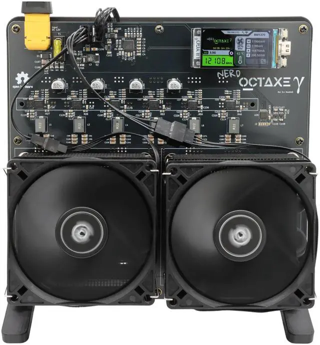 Maximize Profit, Minimize Power: Equipped with four industry-leading BM1370 ASIC chips (6 TH/s each), the NerdQaxe++ delivers a total hashrate of06 TH/s, optimized exclusively for SHA256 Bitcoin mining. With an exceptional power efficiency of 1516 J/TH and an operating consumption of just100W, it achieves the perfect balance between high performance and low energy useideal for 24/7 home mining without excessive electricity costs.