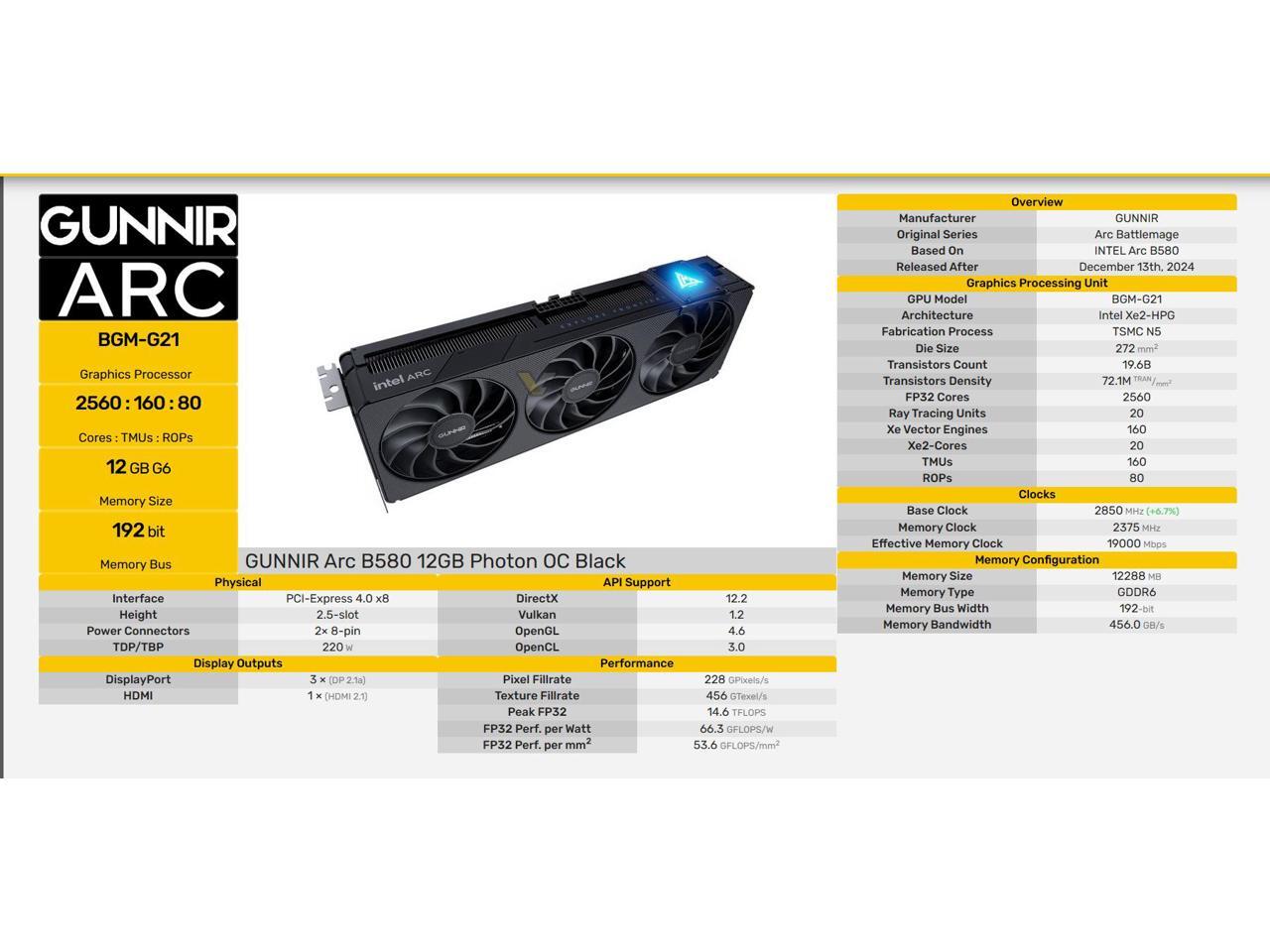 - Powerful Graphics: The GUNNIR Intel Arc B580 Photon features 12GB of GDDR6 memory clocked at 2850MHz, delivering exceptional performance for gaming and content creation.
