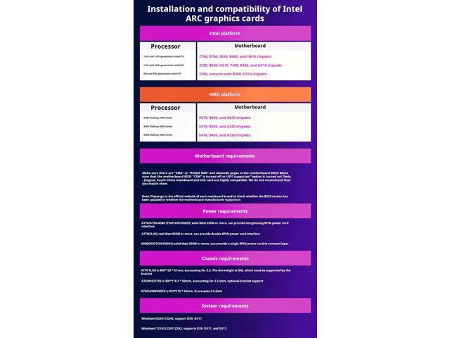 - Next-Gen Architecture: Leveraging Intel's latest Arc GPU architecture, this card offers enhanced visuals, improved power efficiency, and support for advanced graphics technologies.