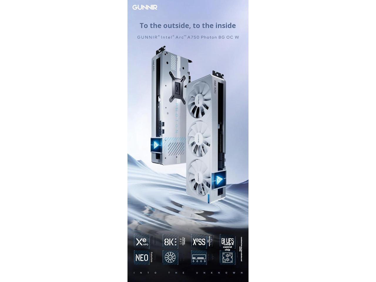 GUNNIR Intel Arc A750 Photon 8G OC Black GDDR6 2400MHz Triple Fan White Graphics Card (256-bit, PCIe 4.0, HDMI/DisplayPort, Supports 4k)
