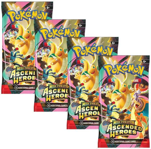 Expand your adventure with the Pokémon ME 2.5 Ascended Heroes 4 Booster-Pack Set. This set includes four booster packs from ME 2.5 Ascended Heroes expansion, making it perfect for collectors and players alike. Each pack contains 10 random cards, ensuring that every opening is filled with surprise and excitement. This bundle is perfect for players who want variety while keeping things compact. Great for deck building, collecting, or gifting to Pokémon fans looking to dive into the Ascended Heroes set.