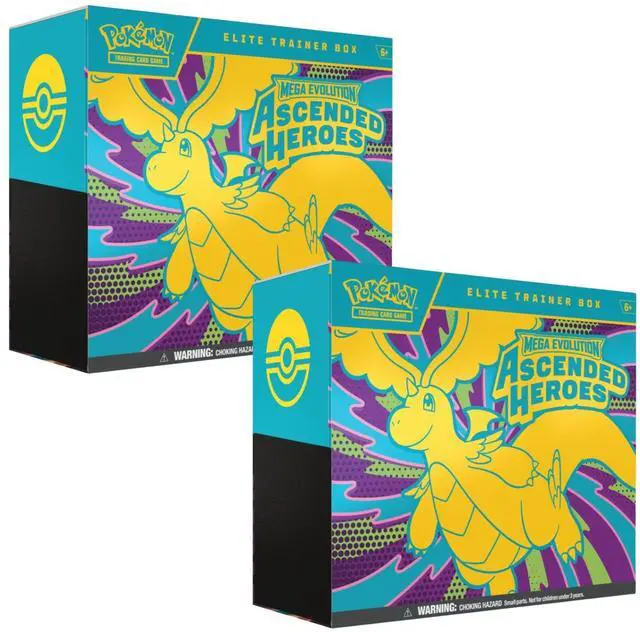 Rise to a New Challenge! Marvel at the awesome potential as Mega Dragonite ex takes flight, leading a gathering of all-star Pokemon to battle! Trainer's Pokemon and Stellar Tera Pokemon ex join returning and newly discovered Mega Evolution Pokemon ex, including some with special artwork showing off their biggest and boldest attacks. Celebrate the stars of Scarlet & Violet and the dawn of Mega Evolution with the Pokemon TCG: Mega Evolution Ascended Heroes expansion! You'll find many items in each of these Elite Trainer boxes to help you enhance your game. With this listing, you get two Ascended Heroes ETBs
