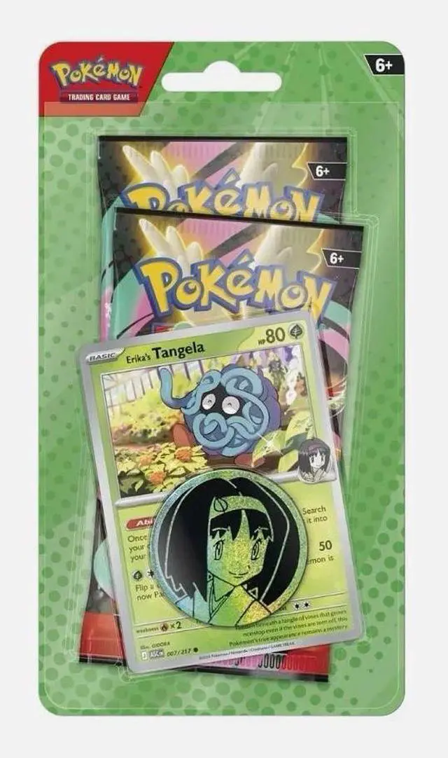 In this collection, you?ll find a promo card featuring Erika?s Tangela, a metallic coin featuring Erika, and two booster packs from the special Mega Evolution?Ascended Heroes expansion.