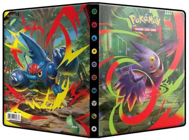 4-Pocket Portfolio for Pokmon features a vibrant, full-art cover of Mega Gengar and back cover of Mega Heracross. Each portfolio stores and protects up to 40 standard size cards single-loaded and 80 cards double-loaded in archival-safe pages. There are also pages in the center of the portfolio to store up to 4 oversized Pokmon cards. Made in California, U.S.A.