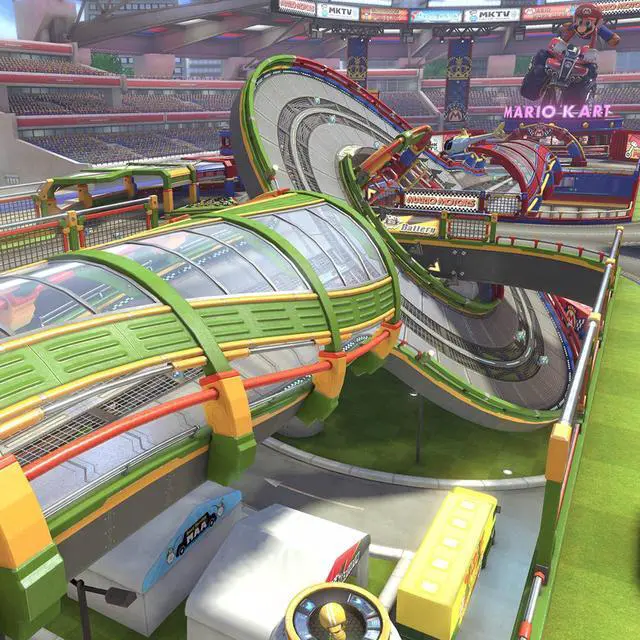 Hit the road with Mario Kart 8 from Nintendo and play anytime, anywhere. Race your friends or battle them in a revised battle mode on new and returning battle courses. Play locally in up to 4-player multiplayer in 1080p while playing in TV Mode. Every track from the Wii U version, including DLC, makes a glorious return. Plus, the Inklings, King Boo, Dry Bones, and Bowser Jr. appear as all-new guest characters, along with returning favorites.
