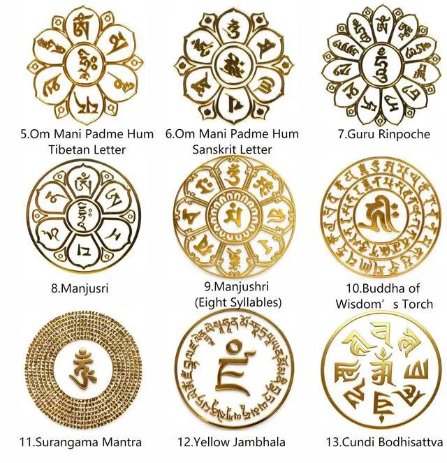 Carry the profound blessings of Tibetan Buddhism with you daily. Are you seeking a way to carry spiritual comfort and cultural heritage in your daily life? This 13-piece metal sticker set features revered mantras, including OM, Chenrezig, Manjusri, Guru Rinpoche, Yellow Jambhala, Shurangama, Cundi. Each decal is a tangible source of peace, wisdom, prosperity, and protection, perfect for practitioners and culture lovers. Versatile & Easy to