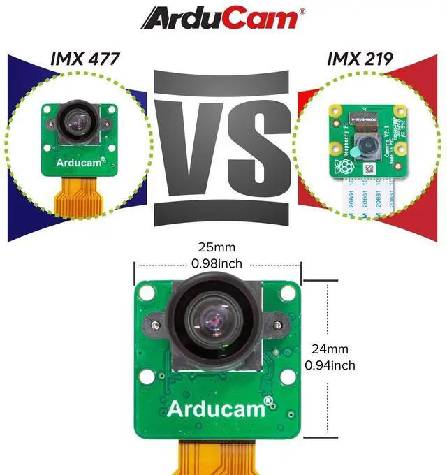 Lightweight: 24mm x 25mm IMX477 camera board, as mini as Raspberry Pi V2 module size, mounted an M12 lens, perfect for the camera applications where high resolution is required, but size and weight are limited, such as a model airplane.