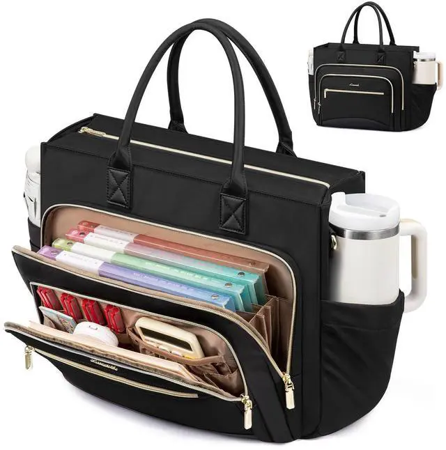 LOVEVOOK Teacher Tote Bag for Women,Laptop bag with Large Cup Holder,Work bag with Accordion File Organizer Pocket,Multi-Pockets Professional Diaper Bag Nurse Bag,Handbag Purse for Work,College,Daily