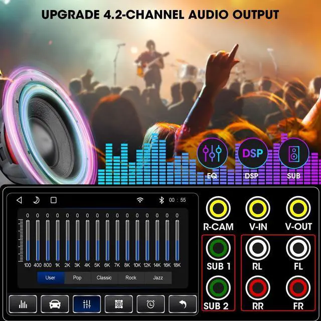 Max Power: The single din audio player with robust power output of 4 x 75 watts and supports 4.2 channels RCA audio out for aftermarket amplifiers and 2 subwoofers. The carplay radio for truck provides DSP sound effects, you can tune it to your ear with built-in 16 band personal digital equalizer ^^