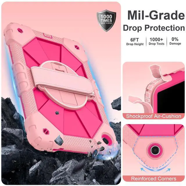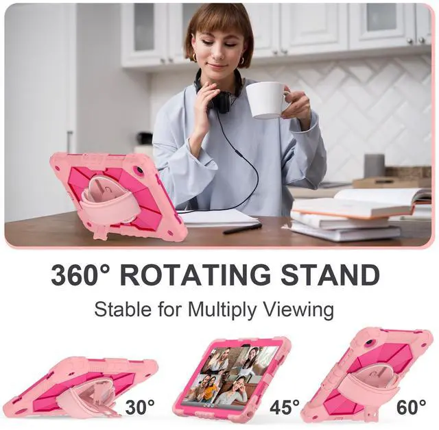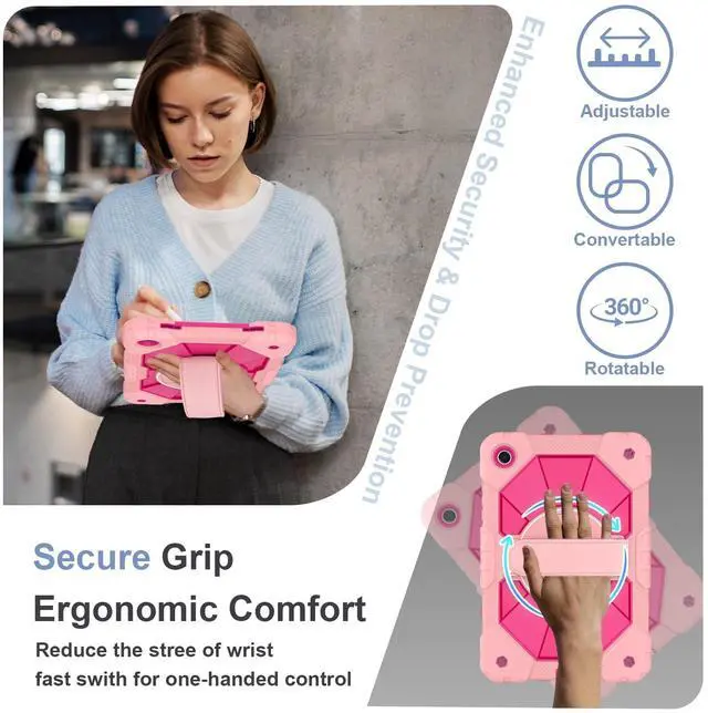 The 360 rotatable hand strap provides a firm grip for extended use, allowing you to switch between portrait and landscape orientations instantlywithout straining your wrist. Engineered for teachers, technicians, and workers who require mobility, on-the-go data entry, managing digital resources, or presenting materials while walking ^^ Heavy-Duty DefenseEngineered for max durability, this Galaxy A11+/A9+ case features a robust 3-layer defense system. A rigid inner shell maintains structural integrity, while a shock-absorbent silicone bumper disperses vibrations from impacts and falls. Effectively guards your A11+ tablet against accidental slips, drops, and daily wear.