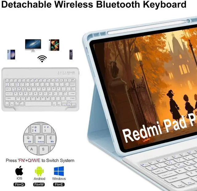 Compatibility for Keyboard Case 12.1 inchOnly Compatible with 12.1 inch Xiaomi Redmi Pad Pro 12.1 /Xiaomi Poco Pad 12.1 Released 2024. Not compatible with any other devices. Please kindly check the model number before purchase. Equipped with useful shortcut keys and compatible with IOS, Windows, and Android systems, provide you with ultimate convenience. ^^ Long Battery Life The Bluetooth keyboard is ultra-thin, it magnetically attaches to the case, and can be removed if not needed. Bluetooth connection is simple. Built-in long life Lithium-ion and high quality battery keyboard, Detachable Bluetooth Wireless Keyboard allows you to personalize your setup, match specific working conditions.