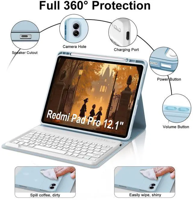 ^^ Precise Cutouts and 3-Multi AnglesPrecise Cutouts allow full access to all ports, sensors, speakers, microphones and cameras. (Redmi pad pro 12.1" )3 different horizontal bracket angle slots are built into the case, which can be easily adjusted to the angle that best suits you. Whether reading, working or watching videos, redmi pad pro case can be easily handled,, very flexible and user-friendly. ^^ Well-Protect Keyboard CaseRedmi pad pro case is made of premium TPU leather. The well-made case gives you a comfortable touch feeling. Premium composition leather exterior provides full protection for your tablet, greatly reduces the damage to your tablet caused by collisions, Soft anti-slip interior protects your tablet from being scratched.