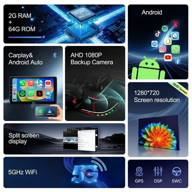 CarPlay & Android Auto As for 2008-2013 Toyota corolla radio. it supports wireless/wired CarPlay & Android Auto. Connect via Bluetooth or USB for calls, messages, music, and maps. Also supports iPhone Airplay and wireless/wired mirroring for seamless phone interaction ^^ Version infomationPowered by Android 12.0 with 64GB ROM for smooth performance. Supports Google, Facebook, TikTok, YouTube, and offers multiple UI themes for a personalized user experience ^^ Advanced FeaturesThis 2008-2013 Corolla radio supports 5G Wi-Fi, Bluetooth 5.0, AUX, AM/FM, GPS & Navigation. Enjoy hands-free calling, phonebook sync, and music streaming.