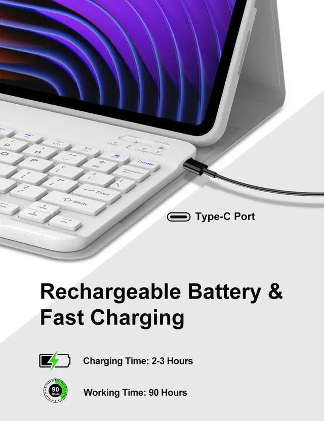 Gift ChoiceIf you are at a loss for gifts ahead of Christmas, Thanksgiving, Mother's Day, Father's Day, or birthday, then a tablet case with magnetic keyboard is a thoughtful gift for parents/children/friends/colleagues! How to connect to Bluetooth? 1. Please fully charge the keyboard and turn it on (usually 2-3 hours). 2. Press the keys Fn+C to turn on the Bluetooth of the keyboard. 3. Turn on the Bluetooth of the Tablet. 4. Find and select "Bluetooth Keyboard", it will automatically connect.