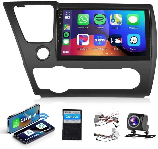 Android Auto: - The car stereo for honda Civic is compatible with Wireless Carplay and Android Auto via Bluetooth connection. It allows easy access to most IOS/Android phone functions such as music, maps, messages, news, etc. on the 9inch HD screen. The Android car audio system also supports calling out Siri or Google Voice Assistant to make phone calls, freeing your hands for safer driving ^^