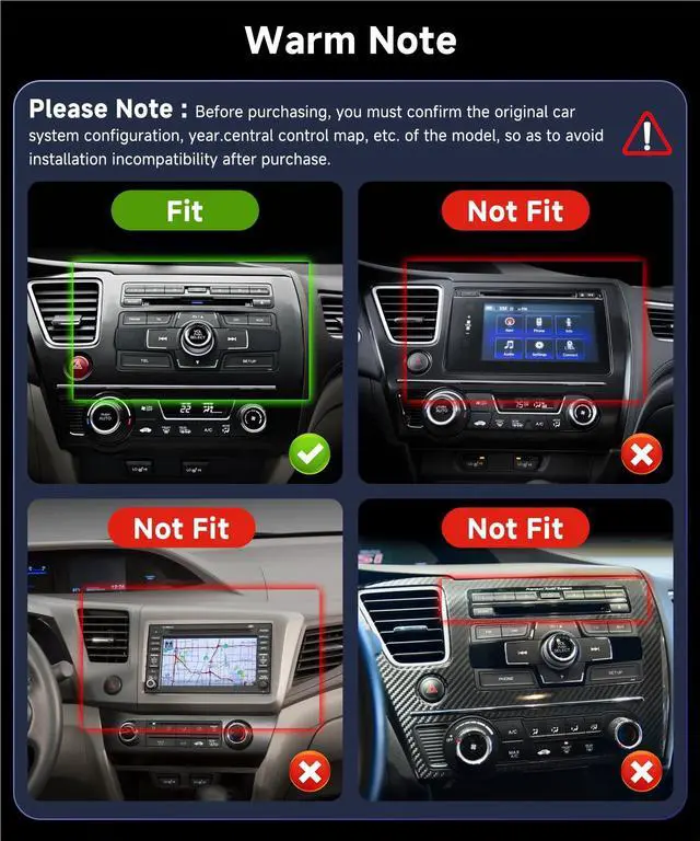 Honda Civic: - This head unit, designed for Honda Civic 2013 2014 2015 2016 2017. Please send us your car's model, produce year and a car dashboard picture by chat, we will help you to check if this car stereo is suitable for your car and equip all the cables for you ^^ 2G+32G Android Radio / WiFi /