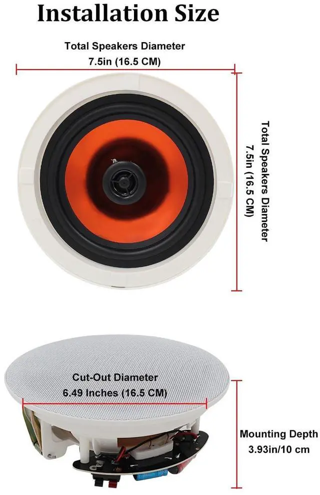 Ceilings: Total Speakers Diameter 6.4 Inches ( 16.2 CM), Cut Out Diameter 7.5 Inch (19CM),