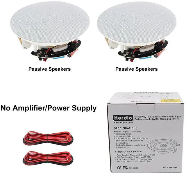 Flush Mount Design - Wide sound dispersion designed speakers easily integrate with new and existing audio systems, traditional Passive speaker design, simply drive power from your home audio receiver or amp ^^