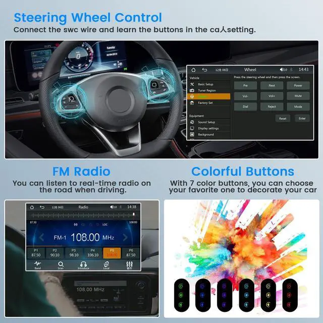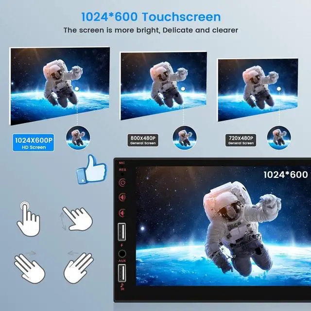 More Functions: Equipped with microphone/AUX/USB input, 2 front usb interfaces, support phone charging and usb flash drive. Multiple UI theme wallpaper and 7 color buttons help to decorate your vehicle environment, the colors are mild and will not be dazzling ^^