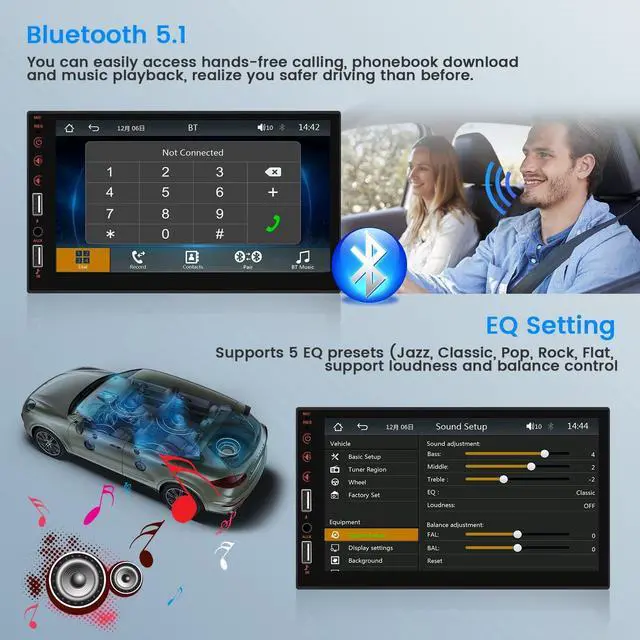 FM & EQ Setting: 7 inch touch screen car stereo supports FM radio with 18 preset stations, you can listen to real-time traffic, news broadcasts, weather forecasts etc. More powerful EQ sound effect, such as Jazz, Classic, Pop, Rock, Flat, allowing for personalized audio experiences ^^ Waterproof Backup Camera &