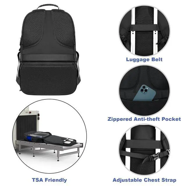 TSA Approved & Comfy: Unfolds the travel backpack carry on freely 90-180 degree to make you quickly pass through the airport security and keep items tidy. Adjustable shoulder straps padded help relieve stress from your shoulder. A luggage strap allows black backpack fit on the trolley of your luggage/suitcase; Adjustable chest strap brings the shoulder straps in tighter to the chest, help you lock your backpack in place securely. Mens backpack is perfect for indoor/outdoor activities ^^