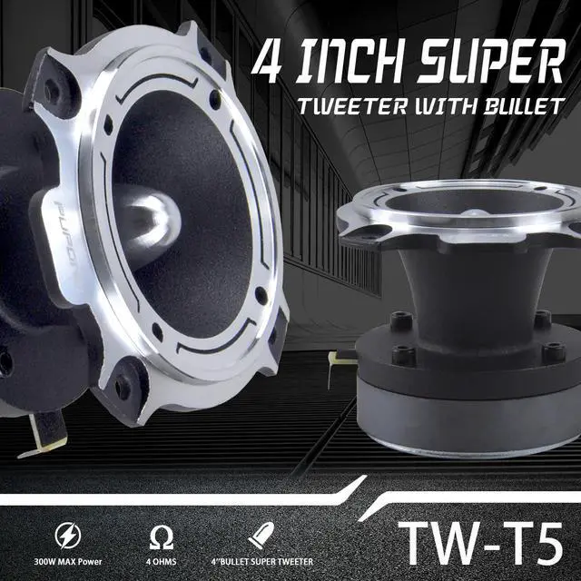 PUPOND 4 inch Tweeters, 300W Max Power, 50W RMS Car Speaker, 4 Ohm, 98dB Car Audio tweeters, Bullet Tweeters,Pair