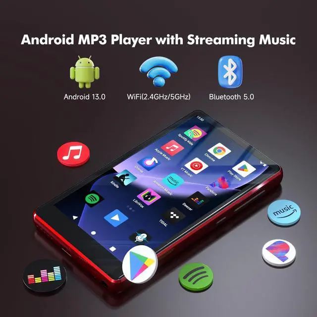 Note: iOS file transfer not supported ^^ [Stream Music Anytime Anywhere] The Android mp3 player with Bluetooth and wifi is preloaded with music apps like Spotify Kids, Pandora, Music, Tidal, Deezer. Stream music over wifi at home, school or on the go. The Bluetooth mp3 player with spotify is ideal for music lovers, especially kids & teens who aren't ready for a phone but want to safely explore their own musical world ^^ [Stories in the Air] After a long day, just sit back, relax, and let the story begin. The portable MP3 player with Bluetooth and wifi is equipped with audiobook apps like Audible, Libby, LibriVox and Kindle(via Wi-Fi). Whether cozy at home or traveling, immerse yourself in stories that calm mind, boost learning, and reduce screen fatigue ^^ [Parental Controls for True Peace of Mind] The spotify mp3 player for kids uses Google's parental control system to give you full control over what kids can access. Easily add or remove apps, set a password to block downloads or changes, and limit access to only what's safe. No app store browsing, No surprises.