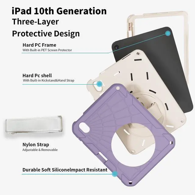 Generation 10.9 inch (Model includes: A3354/A3355/A3356 A2696/A2757/A2777) 2025/2022 Released. NOT fits other Generations' iPad. Please confirm the product before purchase ^^ Soft Strap & Portable Shoulder Strap & Rotating Stand: Provide protection and convenience when you play or work with the case for iPad. Hang it anywhere for your entertainment, makes you using case for iPad 11th/10th Generation easily. 360 Degrees rotating Kickstand provides convenient viewing, with a soft strap, easy to use your case for iPad in your outdoor travelling, working, gaming with kids ^^