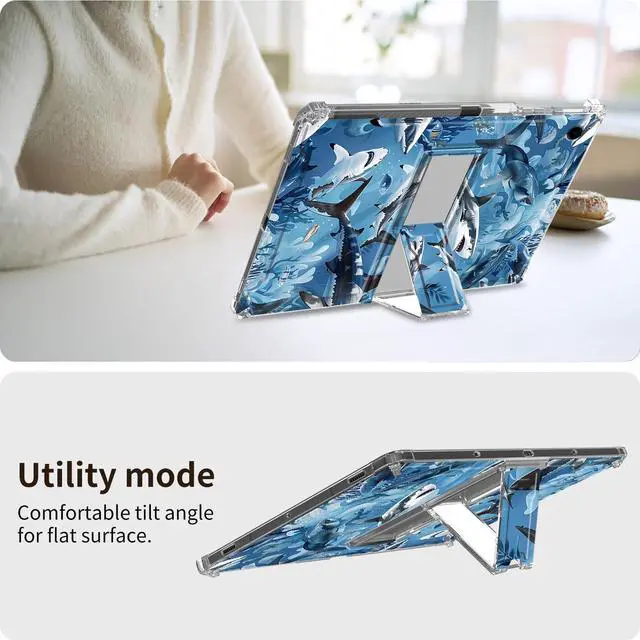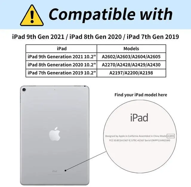 (Note: Not compatible with any other devices). ^^ Foldable Stand Design - for iPad 9th Generation Case with Hidden Kickstand for easy pulling out give your tablet a stable support, support two tablet angle (viewing angle and typing angle) allows easy access to your favorite shows, movies, and gaming. ^^ 4 Aircusion Protection- for iPad 10.2 clear case with reinforced 4 air cushion corners can provide shock absorption and cushioning protection when falling. You can easily charge your tablet without removing the durable scratch resistant case. Precise Cutout Allows you to easily access tablet all ports, sensors, speakers, cameras without having to remove the tablet case. ^^ Lightweight- The transparent tablet case for the iPad 10.2 tablet is made of premium transparent TPU and sturdy PC stand material, making it a thin, shock-proof tablet case that is lightweight and easy to carry. ^^ Pattern Design -Unique patterns printed in high definition on the tablet case bring a beautiful and lovely appearance, will not fade, perfect gift for family and friends.