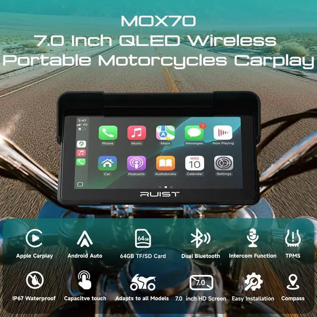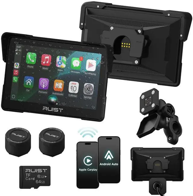 ^^ Dual Bluetooth Audio & Data Connectivity Connect your smartphone and helmet headset simultaneously with dual Bluetooth. Enjoy stable audio streaming, data transfer, and real-time navigation prompts without signal drops. ^^ TPMS Real-Time Monitoring Stay safe with the built-in TPMS (Tire Pressure Monitoring System) that continuously tracks tire pressure and temperature. Receive instant alerts for abnormal readings to prevent blowouts. ^^ IP67 Waterproof & Dustproof Protection Engineered for all-weather riding, the RUIST MOX70 features an IP67 waterproof and dustproof design that performs flawlessly through rain, mud, and dust. It operates perfectly within a temperature range of -20C to 70C, ensuring durability and reliability on every ride, in every season.