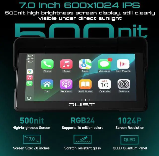 Wireless Apple CarPlay & Android Auto Enjoy full smartphone integration with wireless Apple CarPlay and Android Auto. Access maps, music, calls, and messages hands-free for safer, smarter ridingno cables required. ^^ 7.0" In-Cell HD Touchscreen The 7.0 -inch in-cell laminated HD touchscreen features a 1280480 high-resolution display with 500-nits brightness, providing crystal-clear visibility even under direct sunlight. The screen delivers smooth, glove-friendly touch response and outstanding readability in all weather conditions. ^^ Siri or Google Assistant Voice Control Control everything with your voice. Use Siri or Google Assistant to navigate, play music, or answer callskeeping your focus on the road for safer, hands-free riding.