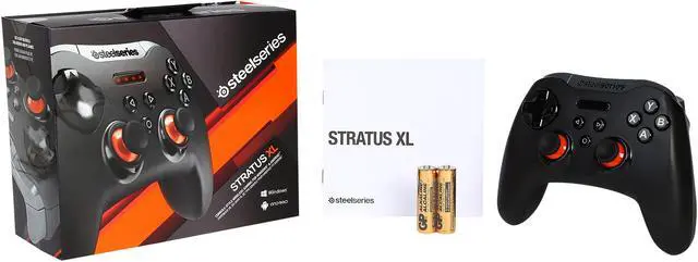 | Features | INSTA-WIN RIGHT OUT OF THE BOX The Stratus XL was designed to pull out of the box, connect to a PC, and instantly start pwning noobs. We hooked up our controller with XInput, so it functions just like a Xbox 360 controller on Windows. STEAM ENABLED Play all of your controller enabled Steam games. Simply pair the controller and enjoy over 2000 titles. THE ONLY ITEM YOU'LL NEED IN YOUR INVENTORY Not only does the Stratus XL work on Windows, but all Android devices as well. Easily switch between both with the touch of a button. COMFORT IS KING The Stratus XL's ergonomic design fits perfectly in your hands and feels great for hours of use. No longer will you have to reach for buttons or be wary of hand cramps. THIS IS THE CONTROLLER YOU'RE LOOKING FOR We took two of the world's most recognizable controllers, and combined them into one super controller. Not only will the layout feel great, it plays great as well. NO STRINGS ATTACHED! We wanted to make sure nothing was holding you back from your game. Our wireless BluetoothTM connection is just as responsive as the major consoles. JOYSTICKS, HOME, AND SHOULDERS BUTTONS, OH MY! Clickable joysticks, easy to use home buttons, and smooth, responsive shoulder buttons place you in the center of the action. KNOWING IS HALF THE BATTLE With four easy-to-read LEDs, the status and connectivity of the controller are always visible. UNLIMITED POWER!...ALMOST. Using two AA batteries (included), the Stratus XL provides you with over 40 hours of gaming experience. GET THAT HAIR TRIGGER With SteelSeries Engine 3, change the actuation point on the triggers for a shorter or longer pull. NO-SCOPES AND TRICK SHOTS Change your sensitivity and button layout in SteelSeries Engine 3, so you can show off your sick skills to all your friends. |