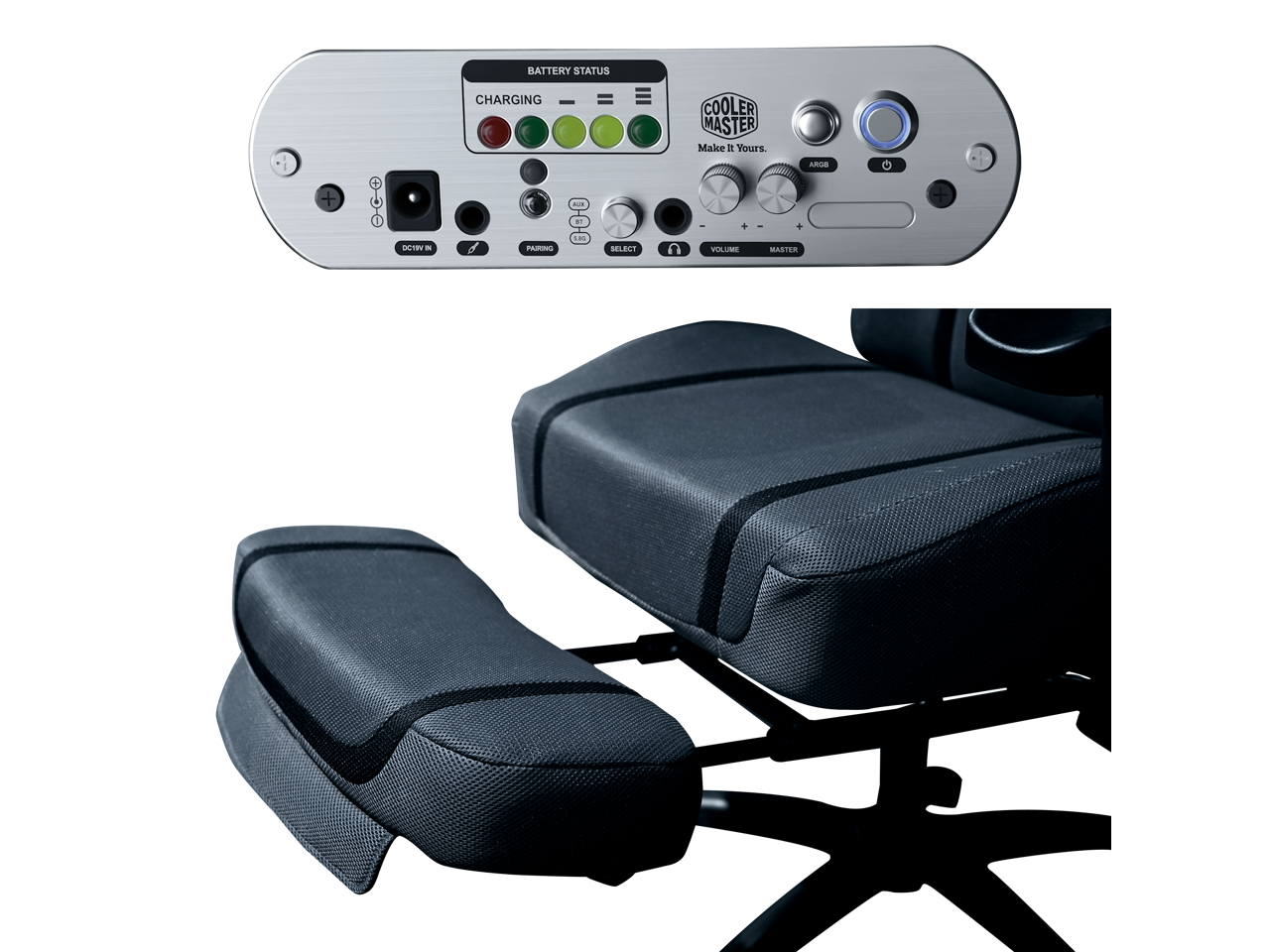 Cooler Master Synk X Ultra Black Ergonomic Real-Time Tactile Immersion Chair, Retractable Leg Rest, All-in-one Controller, Breathable Fabric, Stable Rolling Base, Solid Structure (IXC-SX1-K-US1)