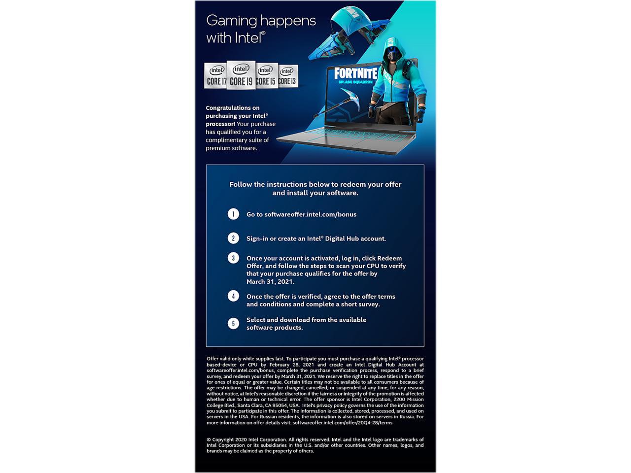 Get the Fortnite Splash Damage Set and access to 10+ apps when you purchase a qualifying Intel Core processor/system.