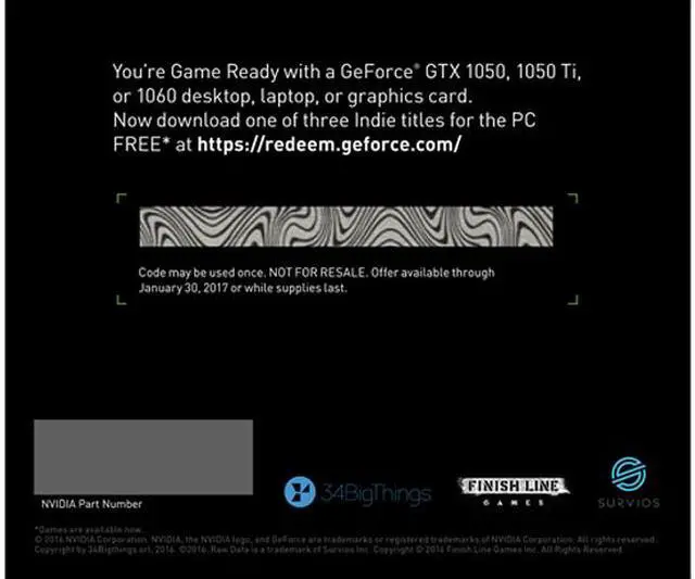Features Buy GeForce GTX 1060, GTX 1050, GTX 1050Ti, pick one of three games for free