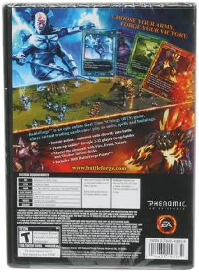 | Features | BattleForge is an online real-time strategy (RTS) game. In the game players are Skylords, beings with god-like powers that summon legendary creatures to do their bidding. Creatures, units, spells and buildings are represented by virtual trading cards, which are brought to life in the game through cutting edge animated graphics, with DirectX 10.1 support. BattleForge is an epic fantasy game that pioneers strategy gaming with its online multiplayer design and robust community features. Players forge their own army with virtual trading cards and team up online to battle each other or the many challenges in the game world of Nyn. Battleforge combines the pace of RTS play with the customization of trading card games. With no base building and production queues BattleForge players are instantly immersed into fast-paced RTS action. Players use virtual trading cards to build the perfect army and lay waste to their foes. The cards are the tools of war each representing a unit, building or spell that is brought to life directly onto the RTS battlefield. Customise and combine factions, and play with a unique army of your own design. Co-op battles are played in teams of two or four, or players can hurl themselves into epic 12 player battles for the greatest rewards. Players must work cooperatively to fulfil the mission goals. Extensive online Player vs. Player battlegrounds, with ranked duels and tournament scenarios for 1 vs. 1 and 2 vs. 2 competition. Robust community features like auction hall, direct trade and in-game mail, result in unique RTS game play that is easy to learn, but hard to master. Requires online connectivity. |