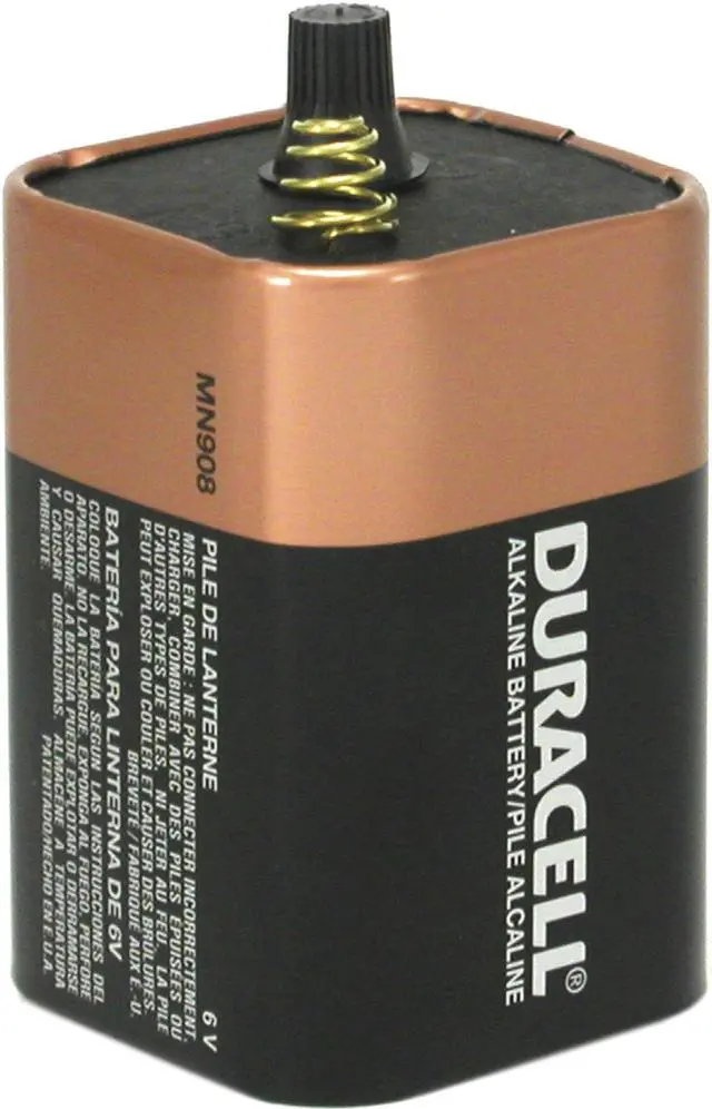 Duracell CopperTop 6V Spring Terminal Alkaline Lantern Battery - CopperTop alkaline battery is guaranteed to stay fresh for up to 7 years. Spring terminal. 13000 mAh. Duracell MN908. - Voltage: 6V, Terminal Type: Spring, Battery Power Type: Alkaline, Battery Capacity: 13000 mAh, Dimensions: 2-5/8 In. W x 4-13/32 In. H x 2-5/8 In L, Warranty: 7 Yr. Shelf Life, Pkg Qty: 1