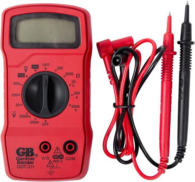 Gardner Bender 3-Function Digital Multimeter - When you're ready to add a multi-meter to your toolbox this unit is a great place to start. This tester is designed to work on most household appliances and is equipped with an easy-to-read 3.5 inch digital display and three testing functions: AC Voltage to 500V, DC Voltage to 600V and Resistance to 2 meg Ohms. The 14 position manual ranging smooth rotary dial helps achieve precise and accurate readings and the low battery indicator gives a warning when the batteries need to be replaced. The durable housing is drop resistant to 3ft and crush rated to 150 lbs. The tester is rated CAT III 600V and conforms to UL 61010-1 standards and certified to CAN/CSA C22.2. The unit comes pre-packaged with secure-fitting 26 inch test leads and includes a 1 year warranty. (Requires 9V battery - not included) - Functions: 3-Function, Type: Digital, Voltage: 500V AC, 600V DC, Power Source: 9V Battery, Batteries Included: No, Pkg Qty: 1, Package Type: Clamshell WARNING: This product can expose you to chemicals including DEHP which is known to the state of California to cause cancer and birth defects or other reproductive harm. For more information go to www.P65Warnings.ca.gov -