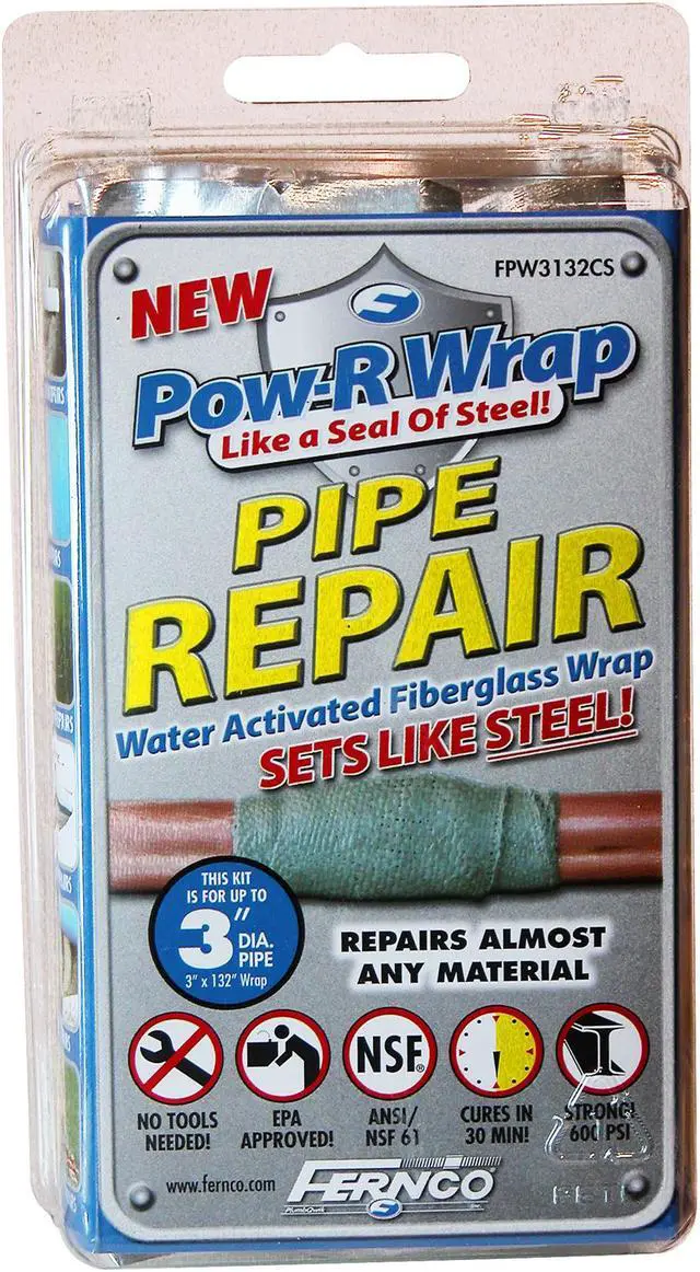 Hand-workable epoxy cures as hard as steel to create permanent, industrial-strength repairs. Simply apply putty, soak wrap, wrap pipe, and tighten for about 15 min.; sets in 30 min. Holds tight, even under water. For use on fluid-bearing pipes made from copper, plastics, PVC, rubber, fiberglass, galvanized, concrete, and more. Fiberglass Repair Kit, 3 x 132 In, Gray
