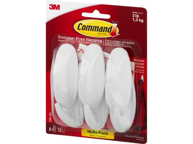 3M Command 170816ES Designer Hooks, Plastic, White, 3 lb Cap, 6 Hooks and 12 Strips/Pack