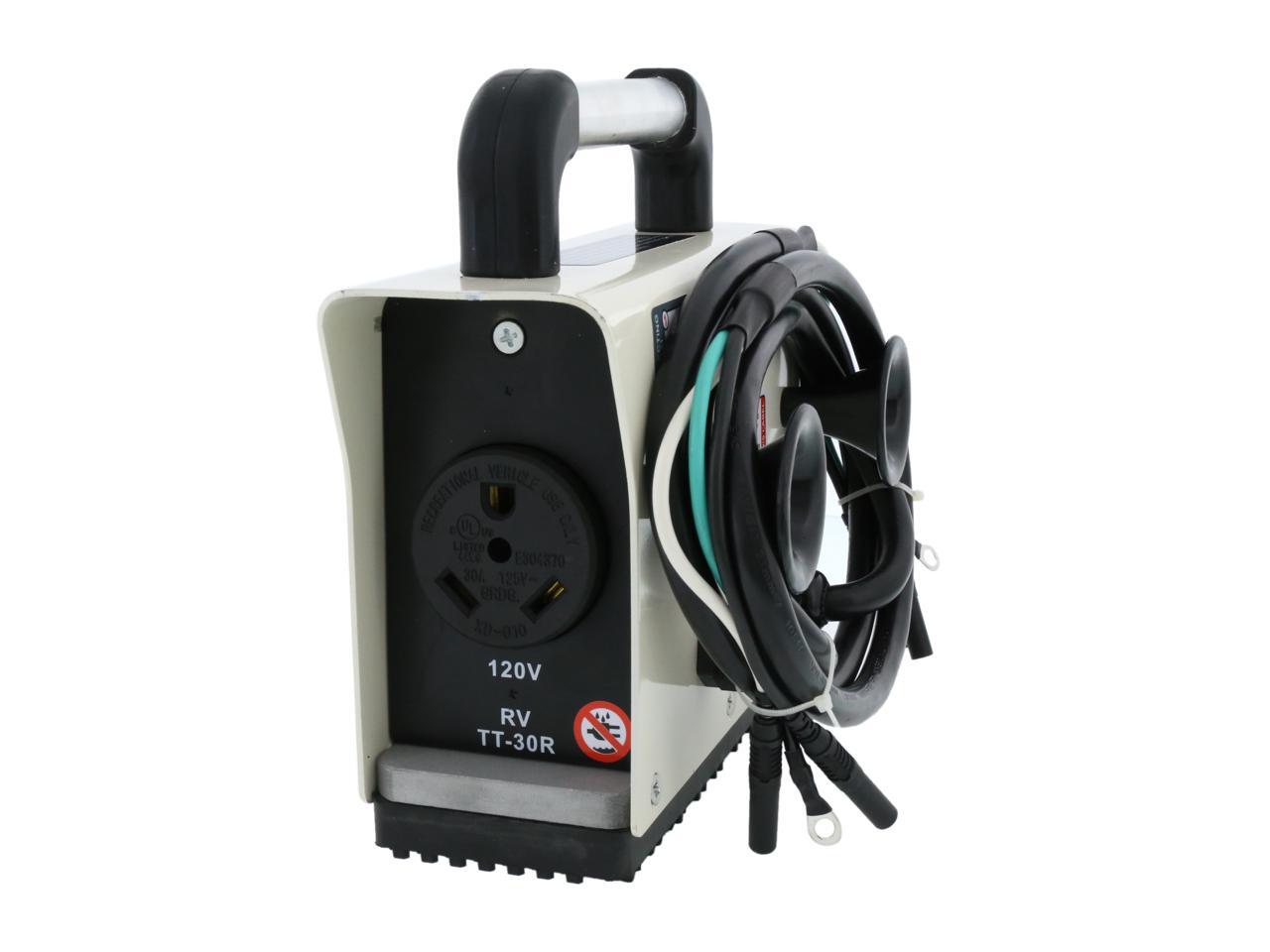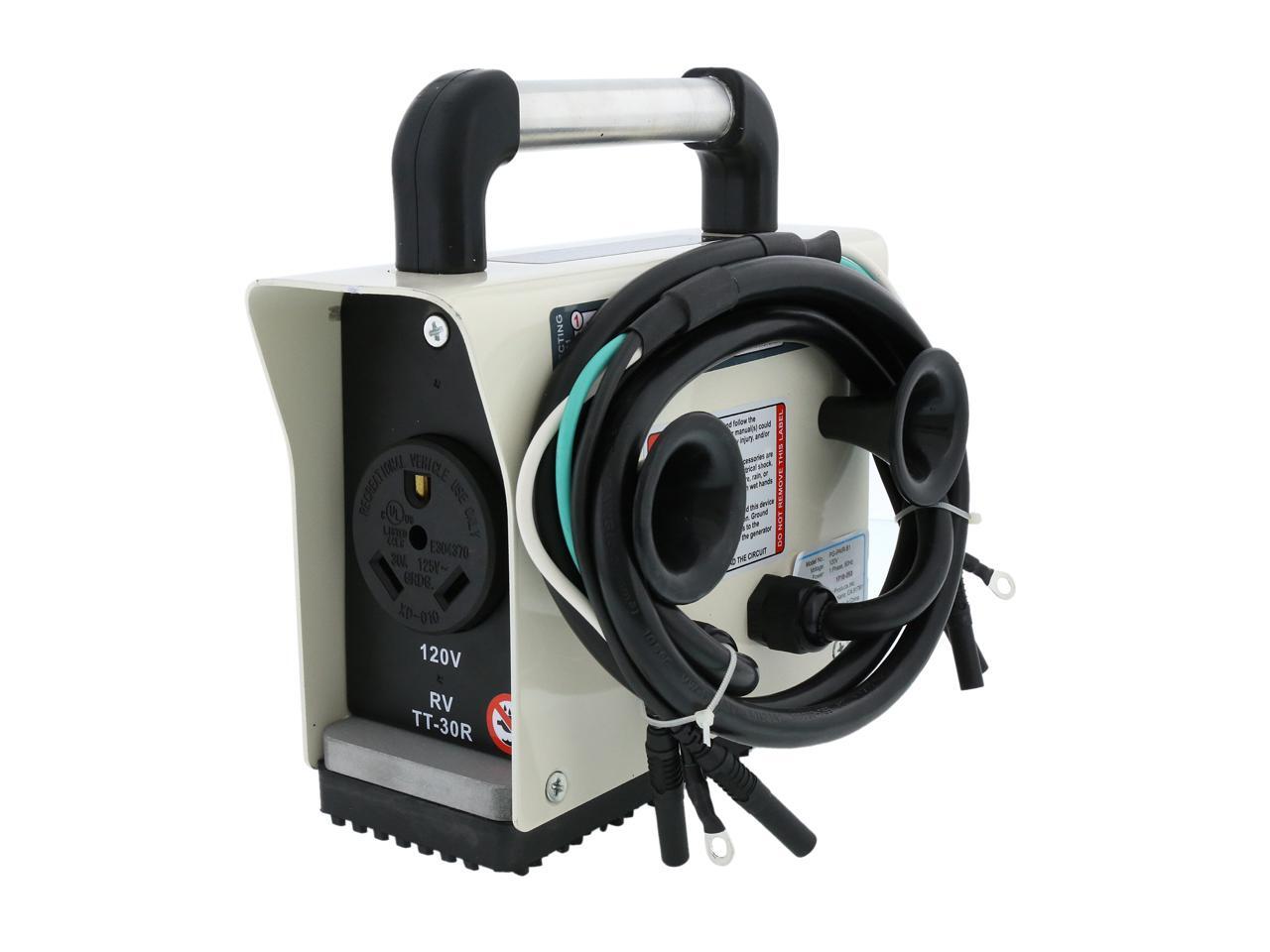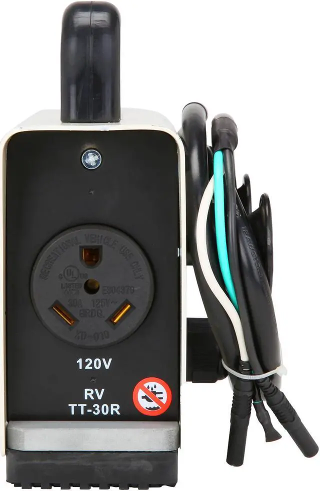 - Features 1 120V RV TT-30R outlet and 1 120V L5-30-R 30A twist-lock outlet
