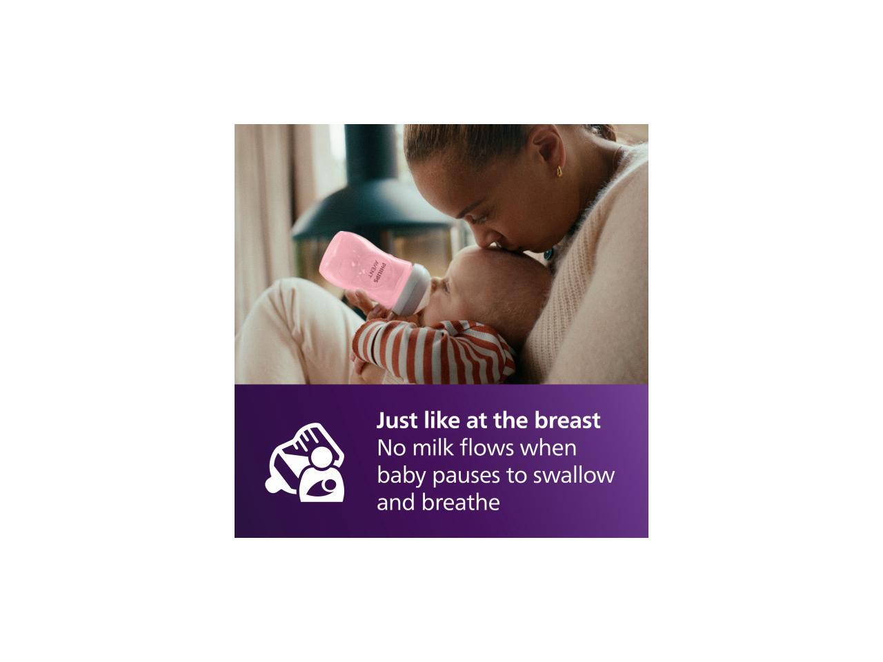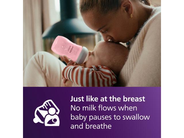 - Designed with a unique opening and tip which only releases milk when baby actively drinks. When pausing to swallow and breathe no milk flows, just like at the breast.